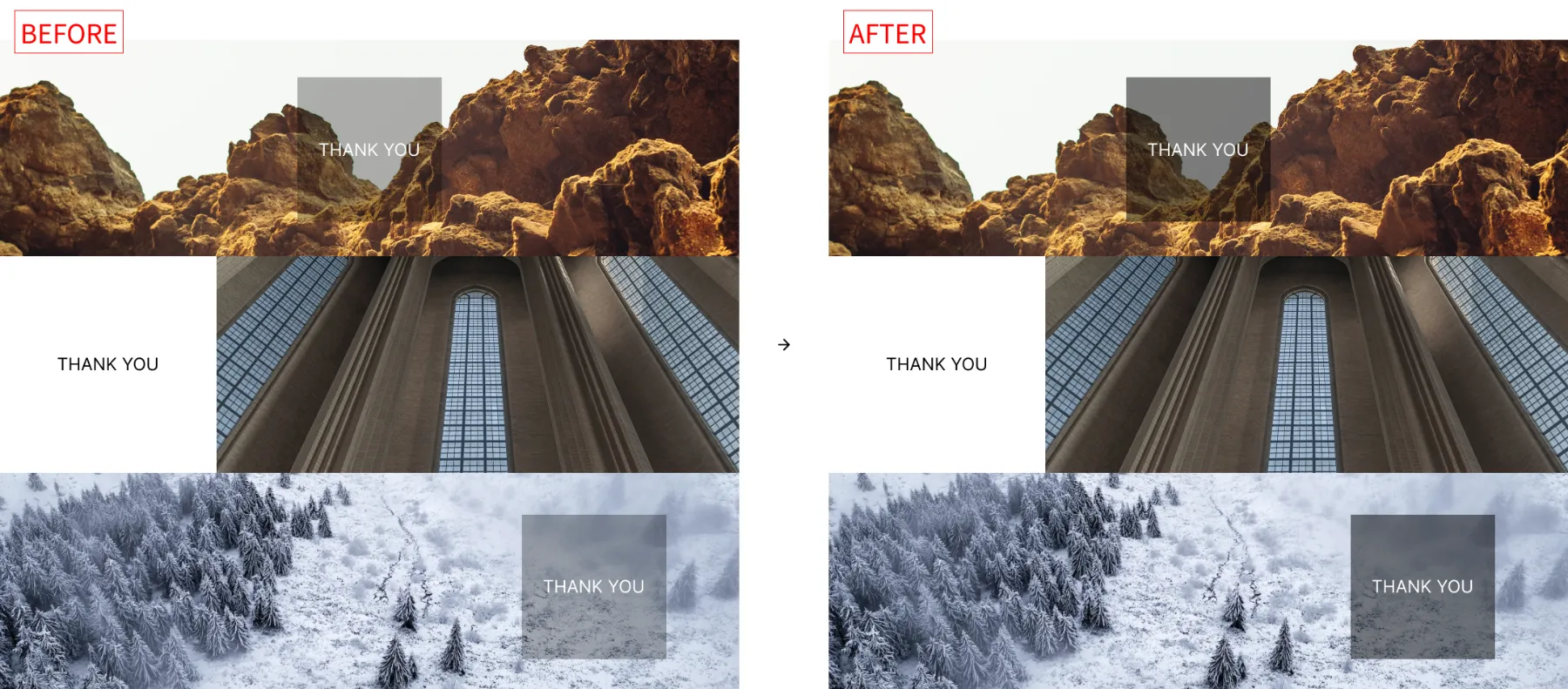 画像を暗くすることなく、画像上のテキストを読みやすくしたいときには以上のような方法が効果的です。読みづらかった文字の背景にぼかしを入れる&色を黒にすることでパッと読みやすくなりました。