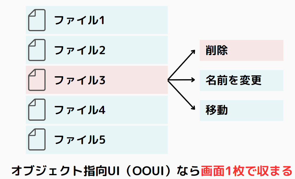 つまり、OOUI(オブジェクト指向UI)は、オブジェクトを起点にUIを設計する考え方です。