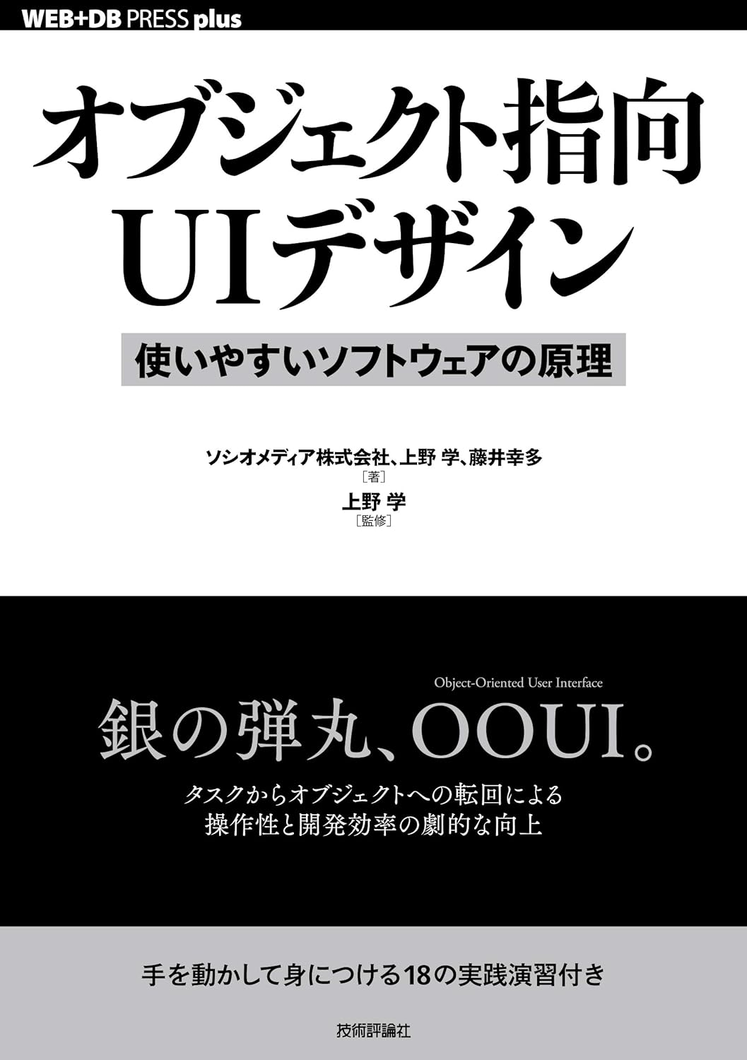 OOUIについて学ぶなら「オブジェクト指向UIデザイン」がおすすめです。第一章から第三章までは、OOUIの基礎的な概念から、設計プロセス、実践に向けた具体的な考え方まで解説されています。