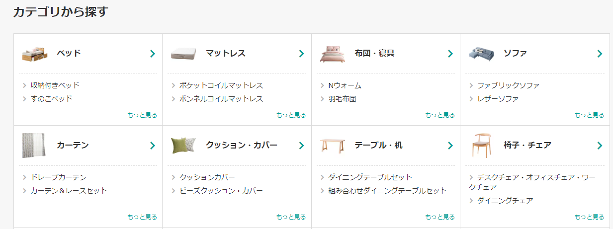たとえば、家具のECサイトであれば、以下のような構造が想定できるでしょう。