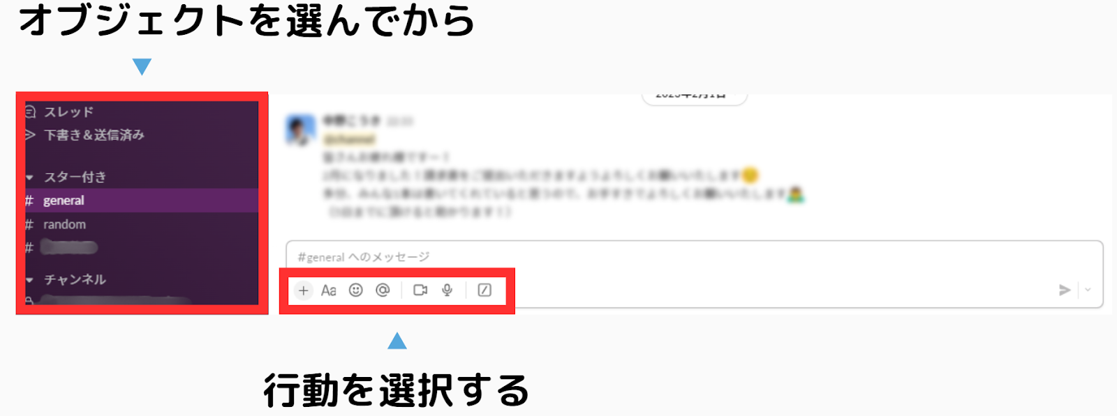 人の思考は「何を」→「どうする」の順番で流れる傾向があるため「何を」にあたるオブジェクトを主体にすると、直感的に操作できるのです。