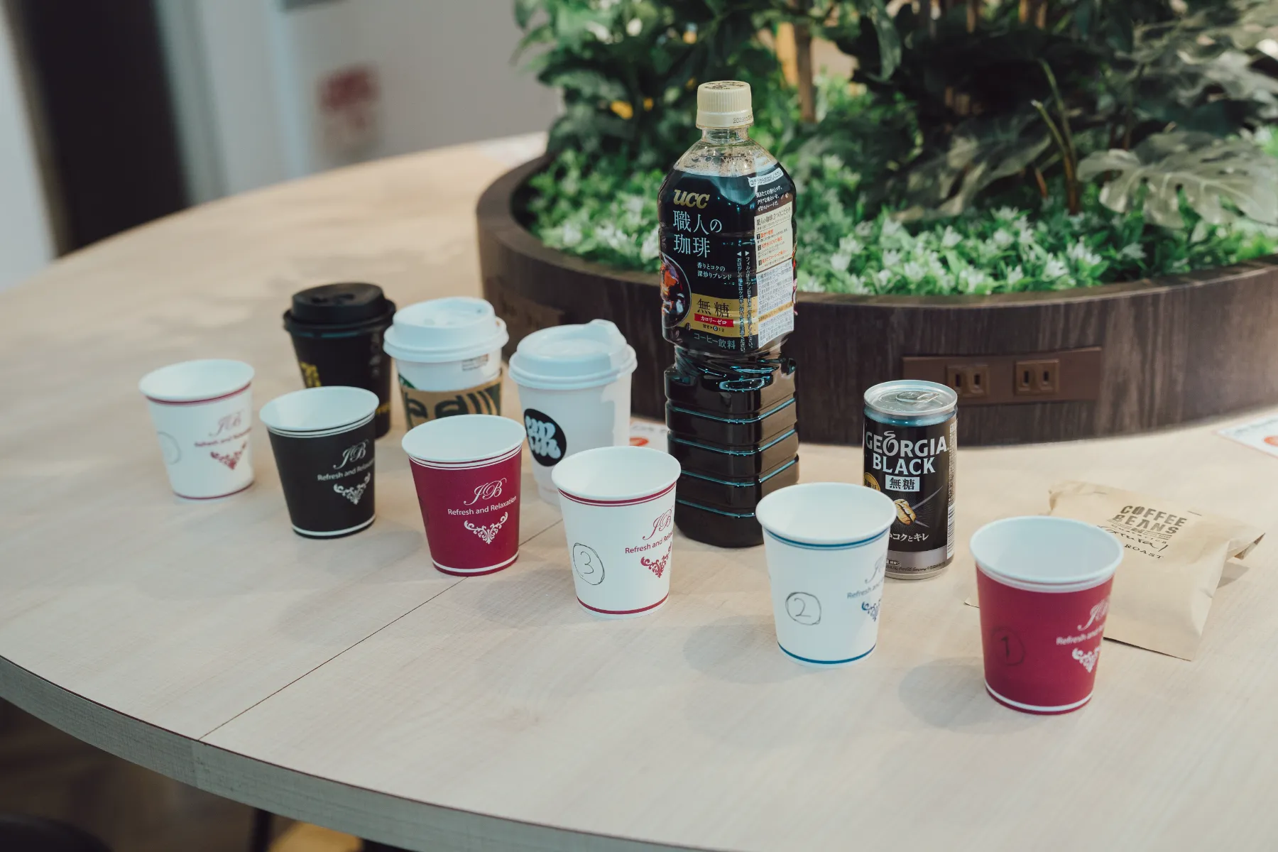 今回ホットコーヒーとそうでないコーヒーがあるので、ホットコーヒーを朝買いに行き、調査するまでずっと冷まして、温度を30度くらいになるように工夫しました。