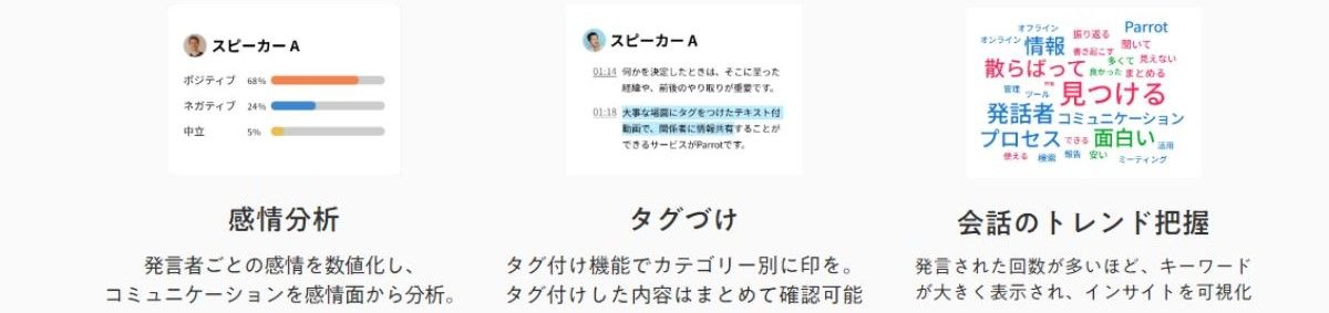 Parrotには、文字おこしするだけでなく、書き起こしたテキストを解析する機能もあります。