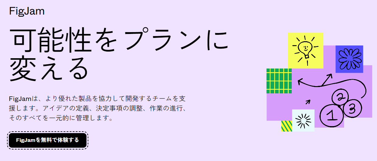 | 特徴 | デザインツールのFigmaと連携できる コミュニケーション機能が充実している FigJam AIによるテンプレート生成が可能 |